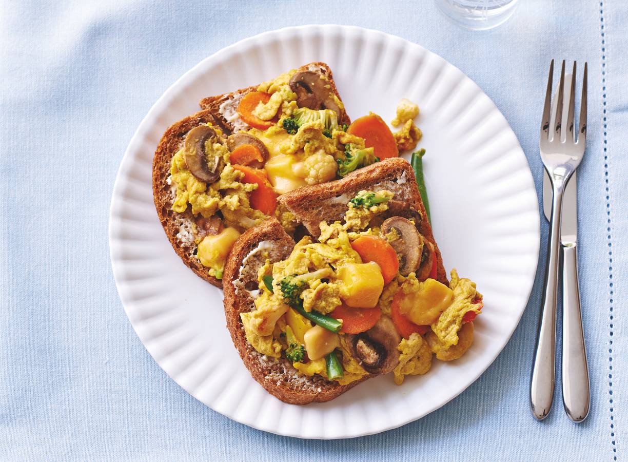 Dit roerei is zacht van smaak door de karnemelk. Kerriepoeder en oude kaas zorgen voor een hartig tintje.