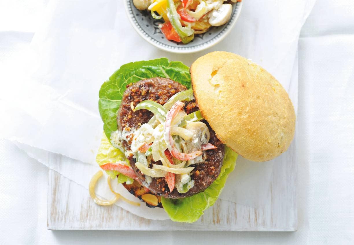 Een broodje hamburger is soms zó lekker. Zeker deze variant met ui, paprika, champignons en een beefburger stroganoff.