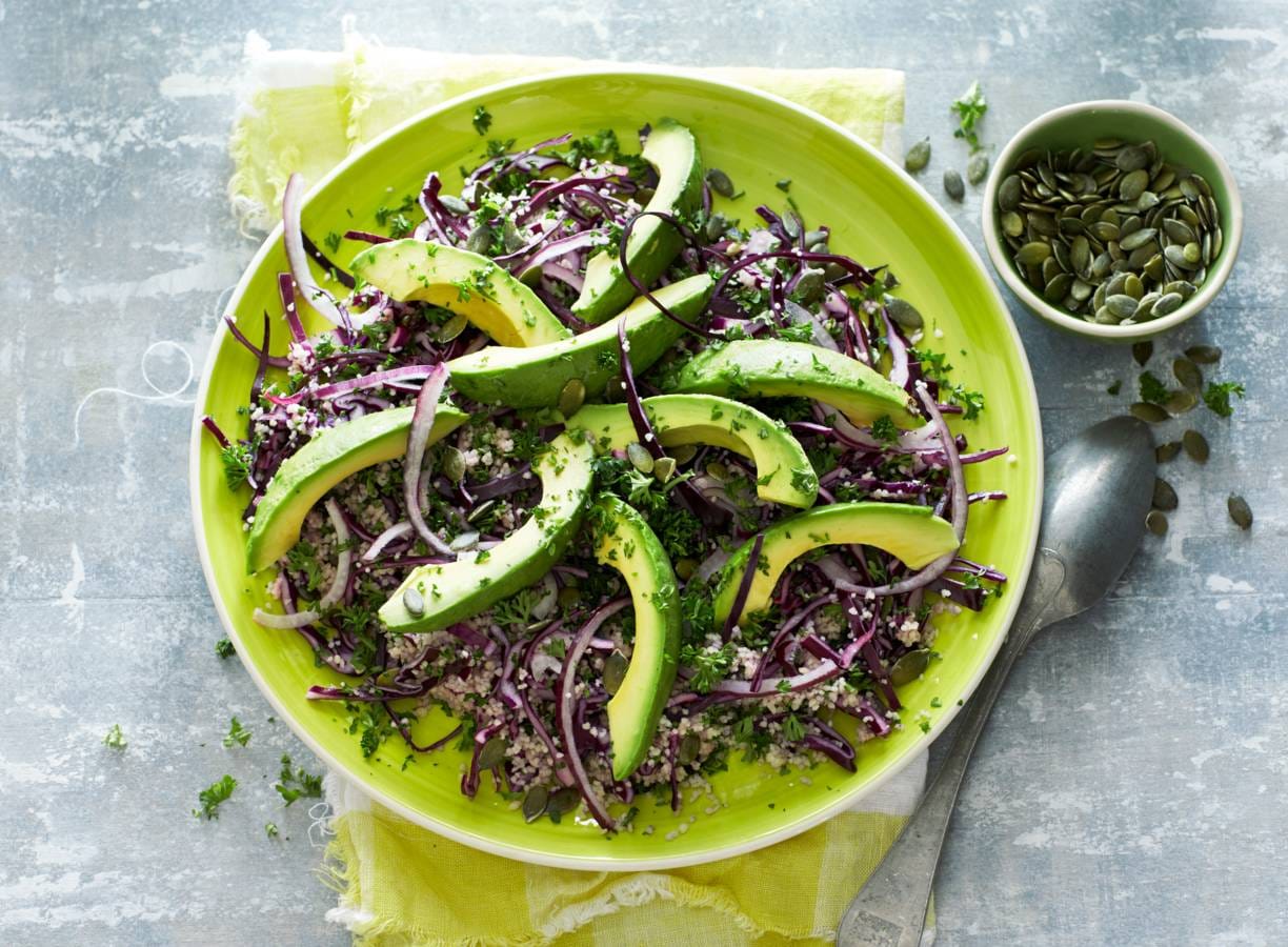 Rodekoolcouscous met avocado