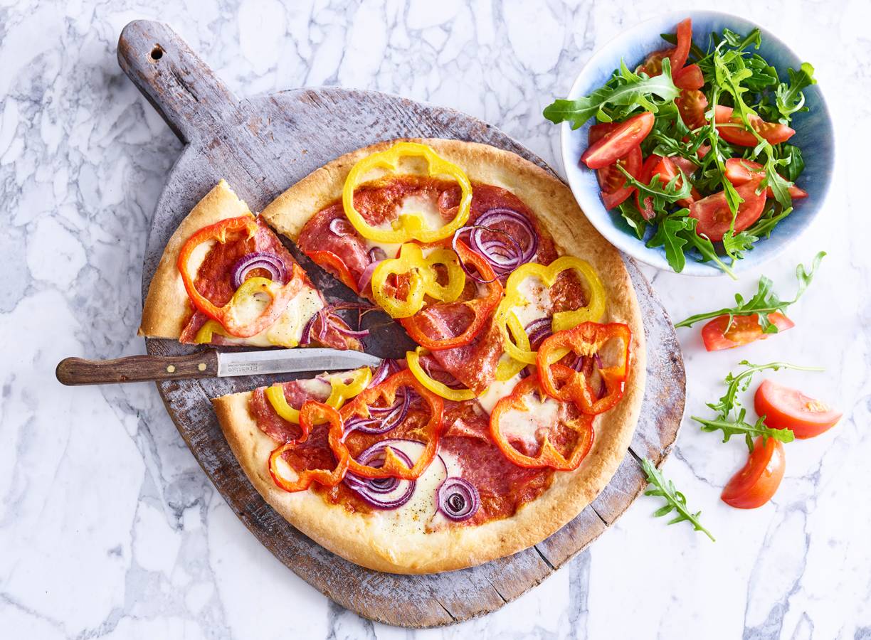 Pizza salami is het ultieme comfort food, dus kruip snel met een pizzapunt op de bank.