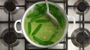 2. Breng ondertussen 2 pannen met water aan de kook. Kook de tuinerwten 6 min. en spoel af met koud water. Kook de tuinbonen 4 min. en spoel af met koud water (blancheren). Houd apart.