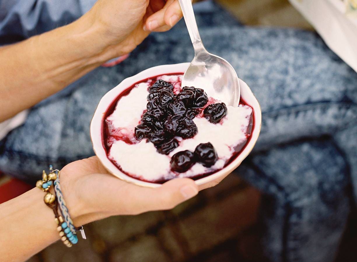 Dit eenvoudige toetje is een knipoog naar Limburgse rijstevlaai met kersen.