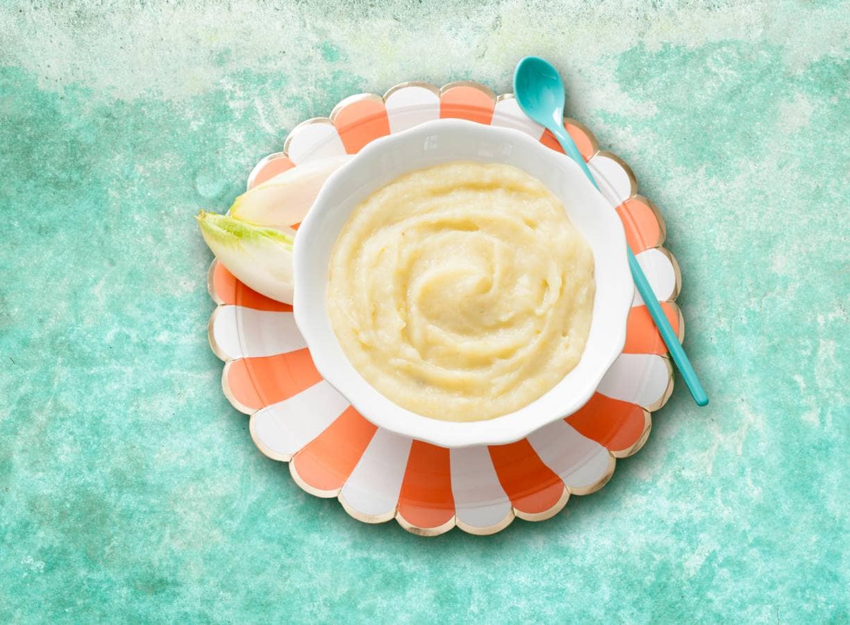 De appel verzacht de smaak van de witlof en samen combineren ze tot een zoetig babyhapje.