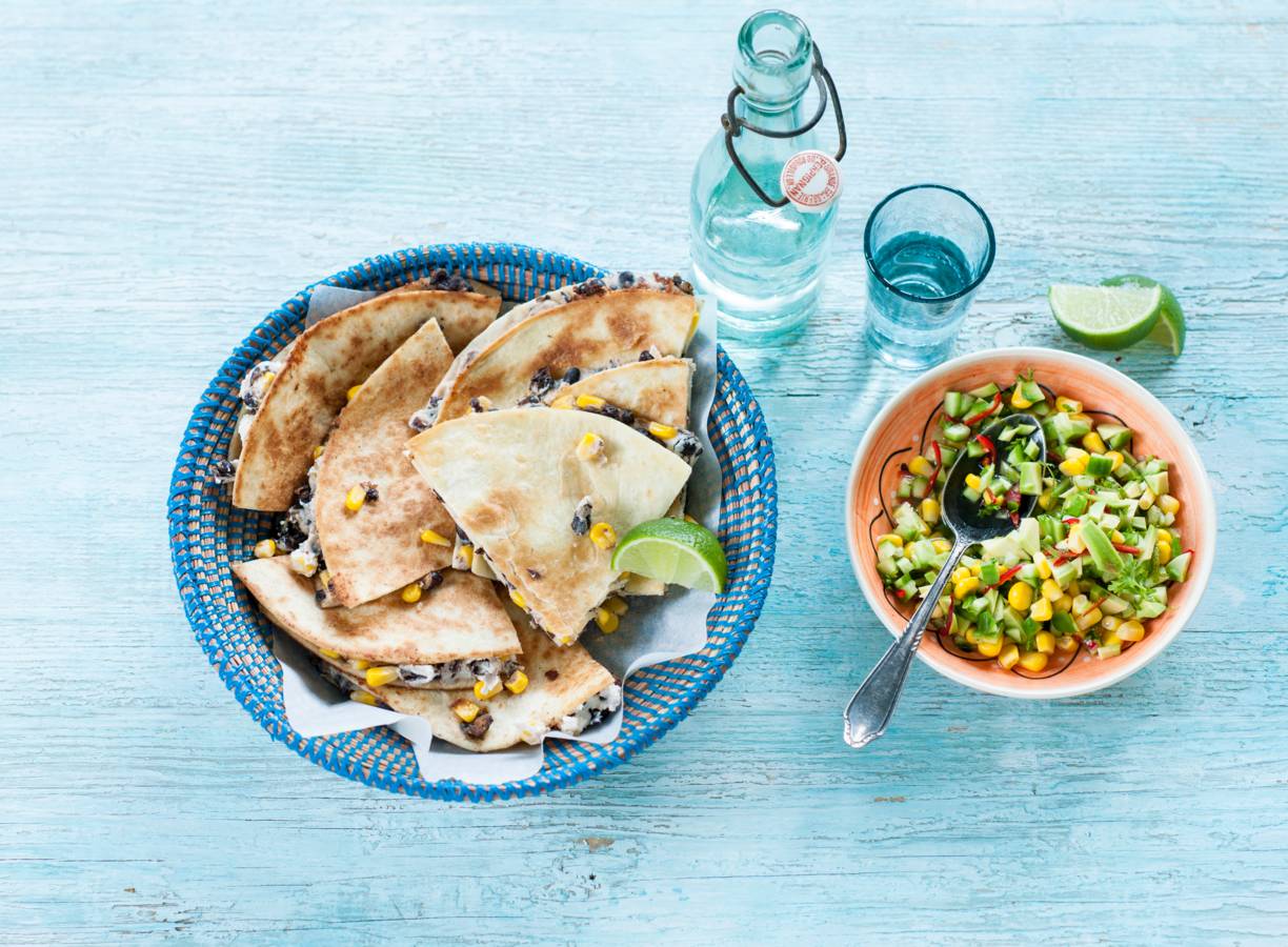 De Mexicaanse tosti! Met een verrassende vulling van geitenkaas en zwarte bonen.