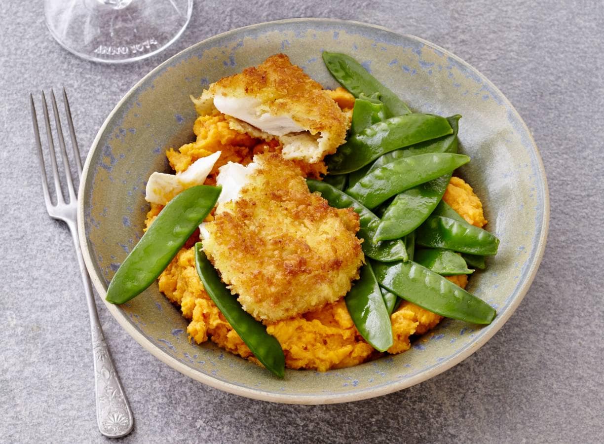 Kook ondertussen de peultjes 2 min. Giet af, spoel af met koud water en laat uitlekken. Serveer de vis met de puree en de peultjes.
