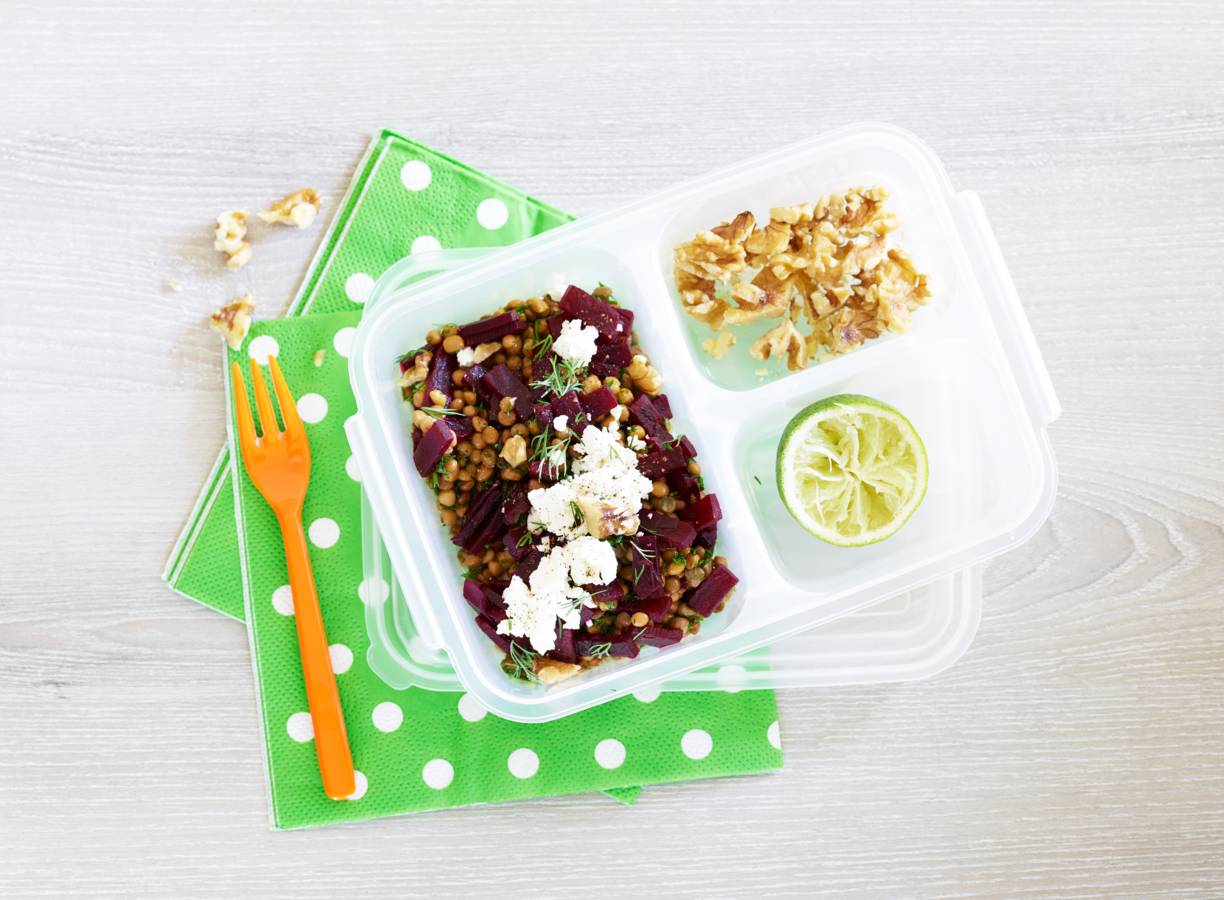 Salade van bietjes, linzen, walnoten en geitenkaas