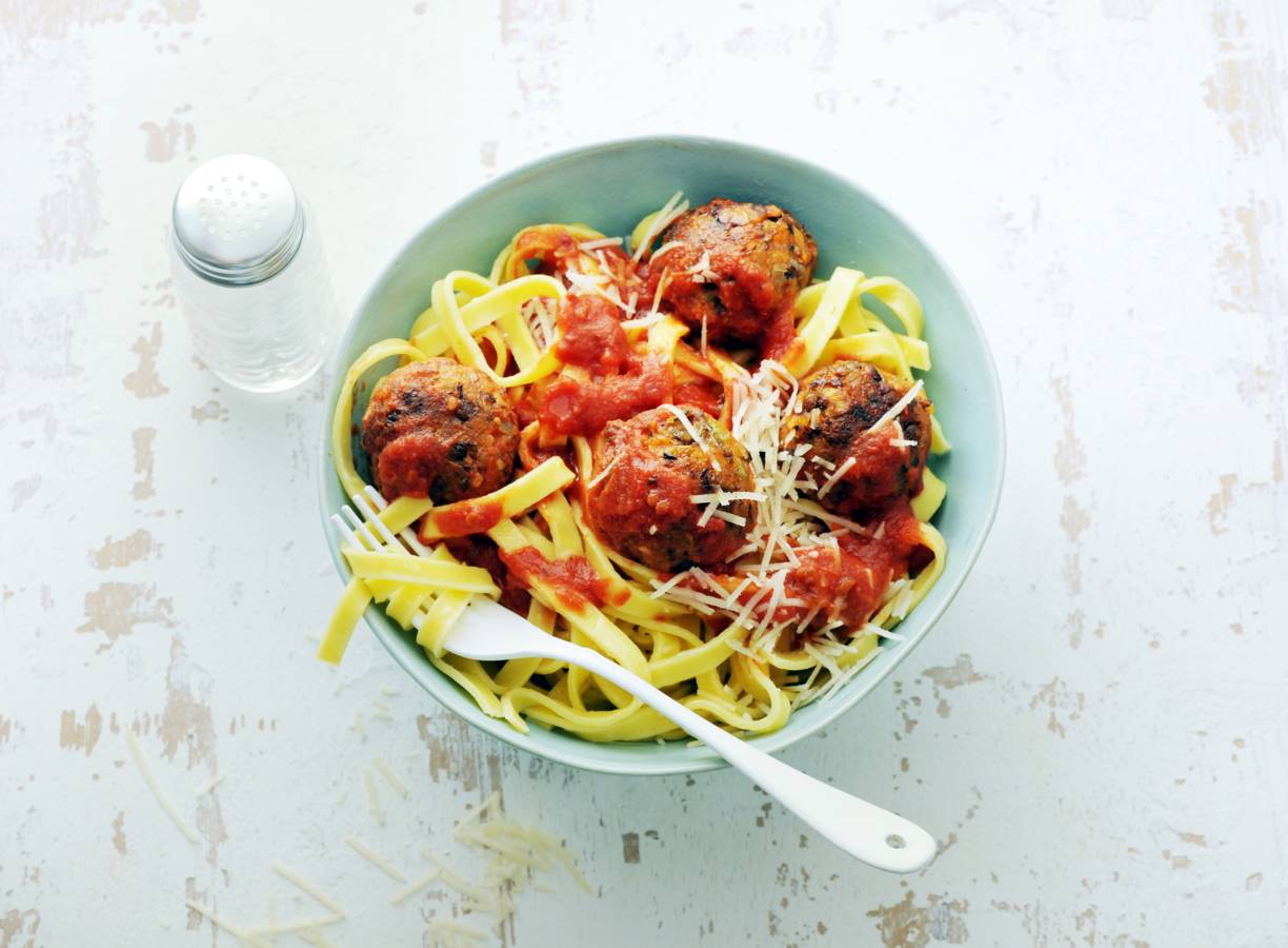 Tagliatelle met veggie balls in tomatensaus