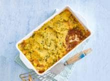 Snelle ovenschotel met kikkererwten, venkel en verrassend: puree van zoete aardappel.