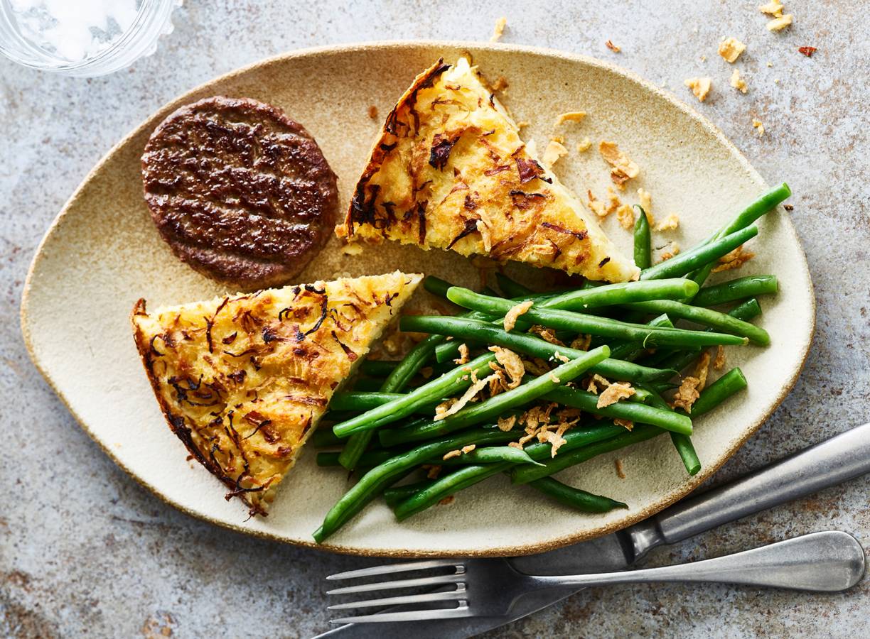 Een bijzonder aardappeltaartje: de rösti meng je met ei en spitskool en bak je in de oven.