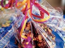 De overgebleven chocolade is nu waarschijnlijk hard geworden. Zet de pan nog 1 minuut op laag vuur en roer weer even. Laat de rest van de chocolade over de soesjestoren druipen. Versier de taart, nu de chocolade nog zacht is, met de mimosabolletjes.