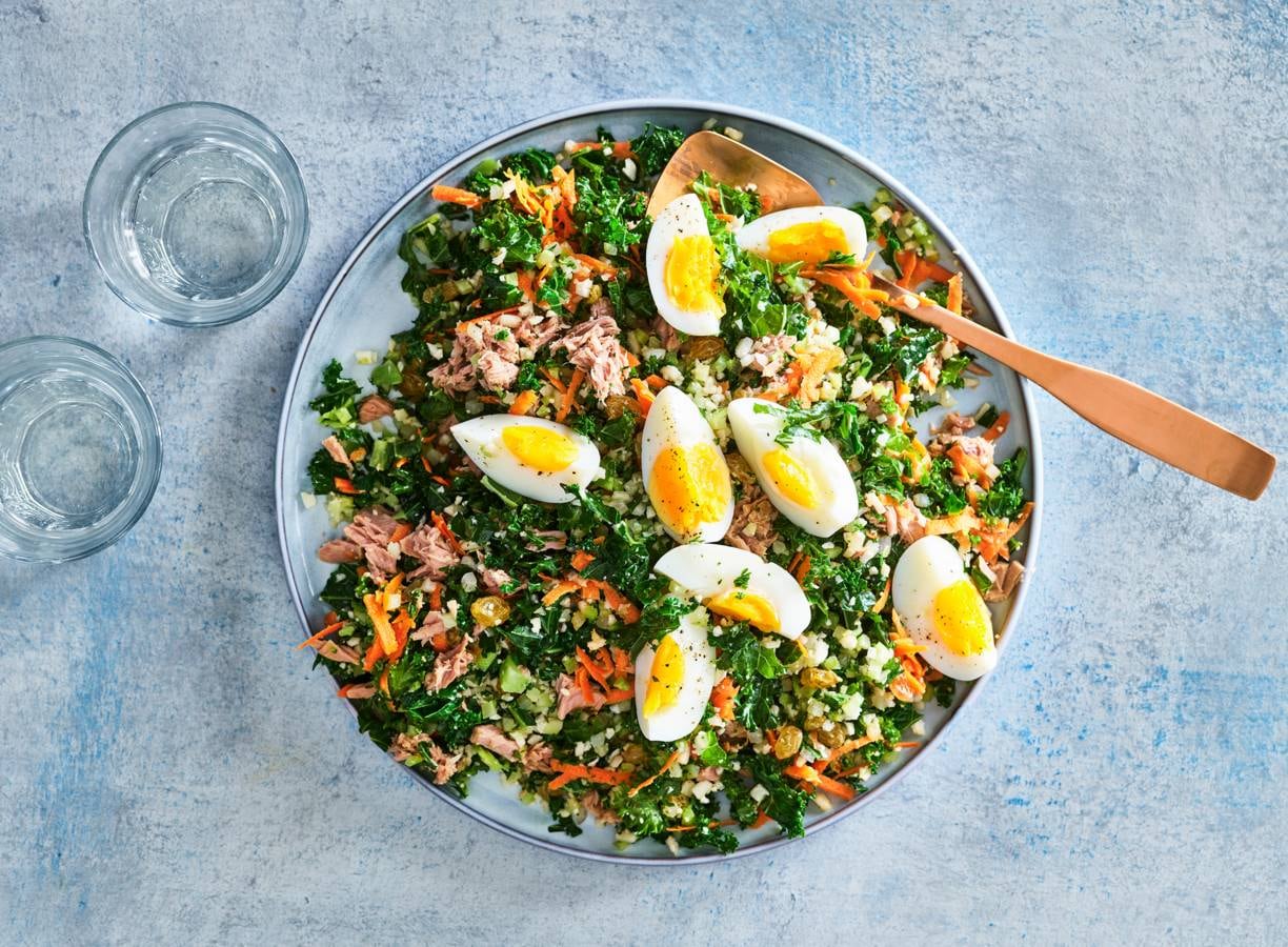 Tabouleh met boerenkool, tonijn & gekookt ei