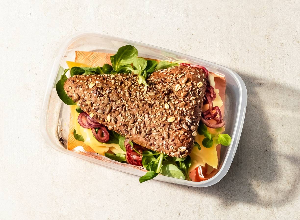 Broodje met oude kaas, gemarineerde ui en veldsla