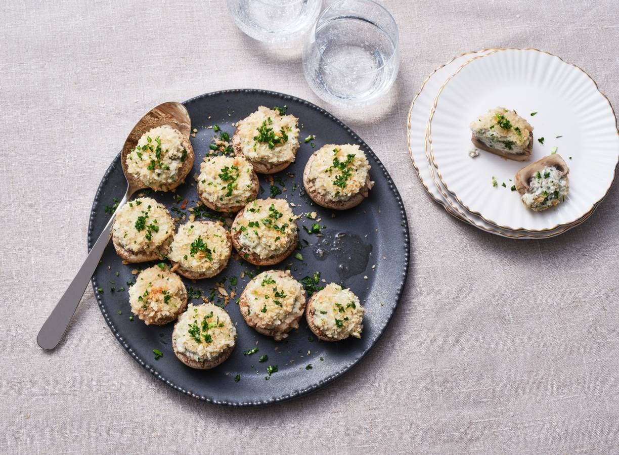 Vul champignons met sjalotten en kruidenricotta, een lekkere frisse tegenhanger voor de aardse paddenstoel.