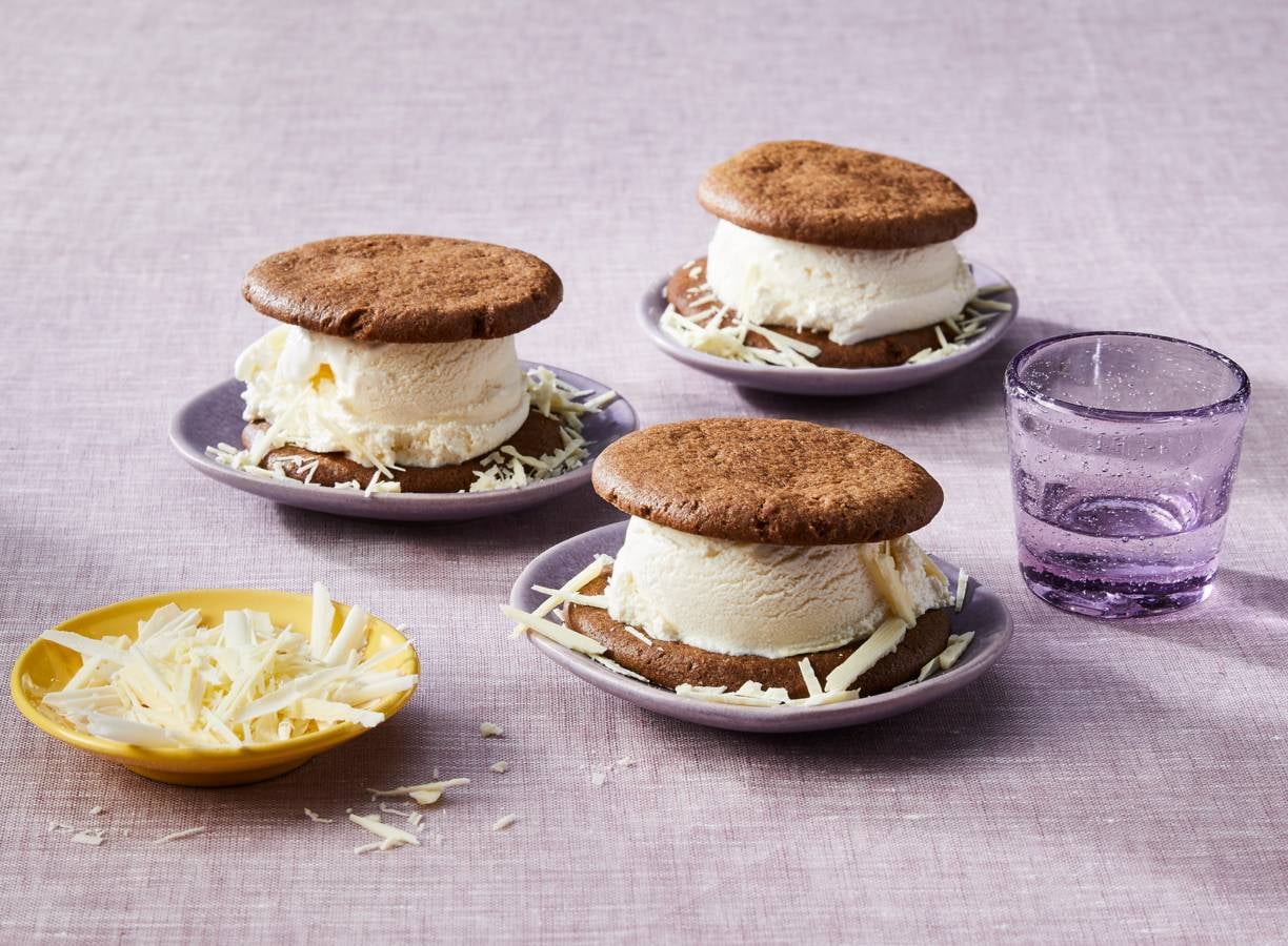 Knapperig, kruidig en oer-Hollands met een twist: mega kruidnoten als sandwich, gevuld met ijs.