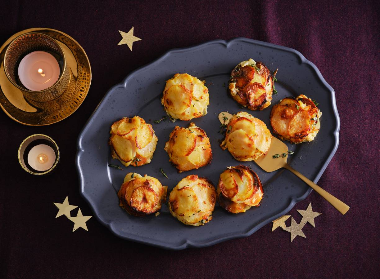 Wat is kerst zonder aardappelgratin? De mini-versie met twee kleuren aardappel is minstens zo lekker als de grote variant.