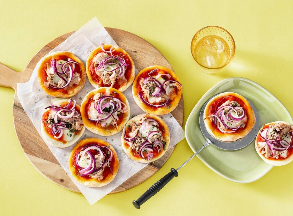 Zet die pizzarette midden op tafel, roep je gasten erbij en vier een feestje met deze zelfgemaakte pizza tonno!