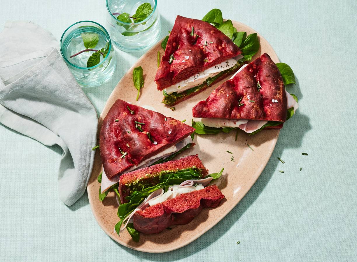 Vandaag = rood! Deze focaciasandwich spat van het bord.