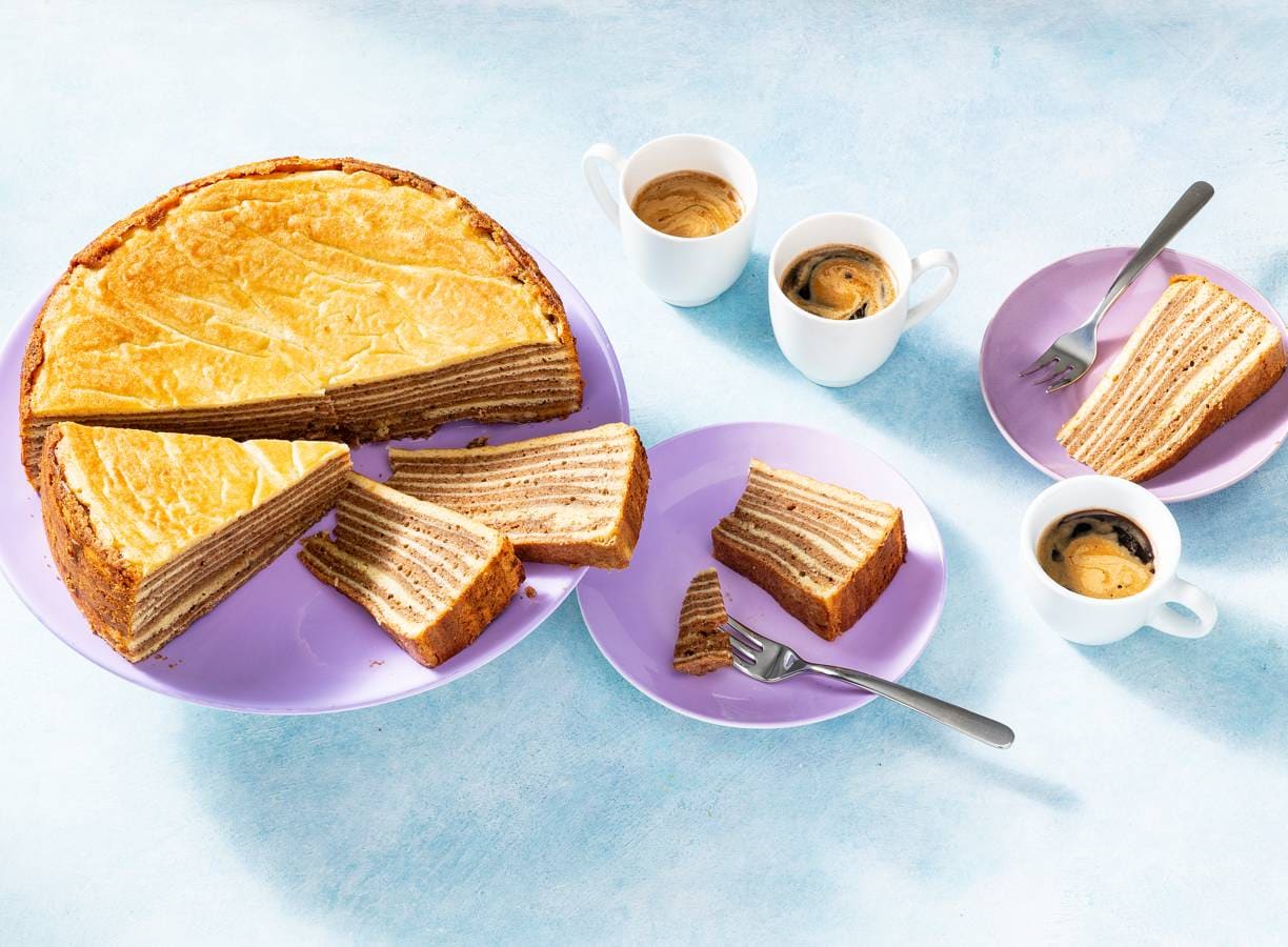 Zelf spekkoek maken: 2 kleuren beslag, laagjes en geduld. Eenmaal af is -ie onweerstaanbaar. De Indonesische naam voor spekkoek is overigens lapis legit.