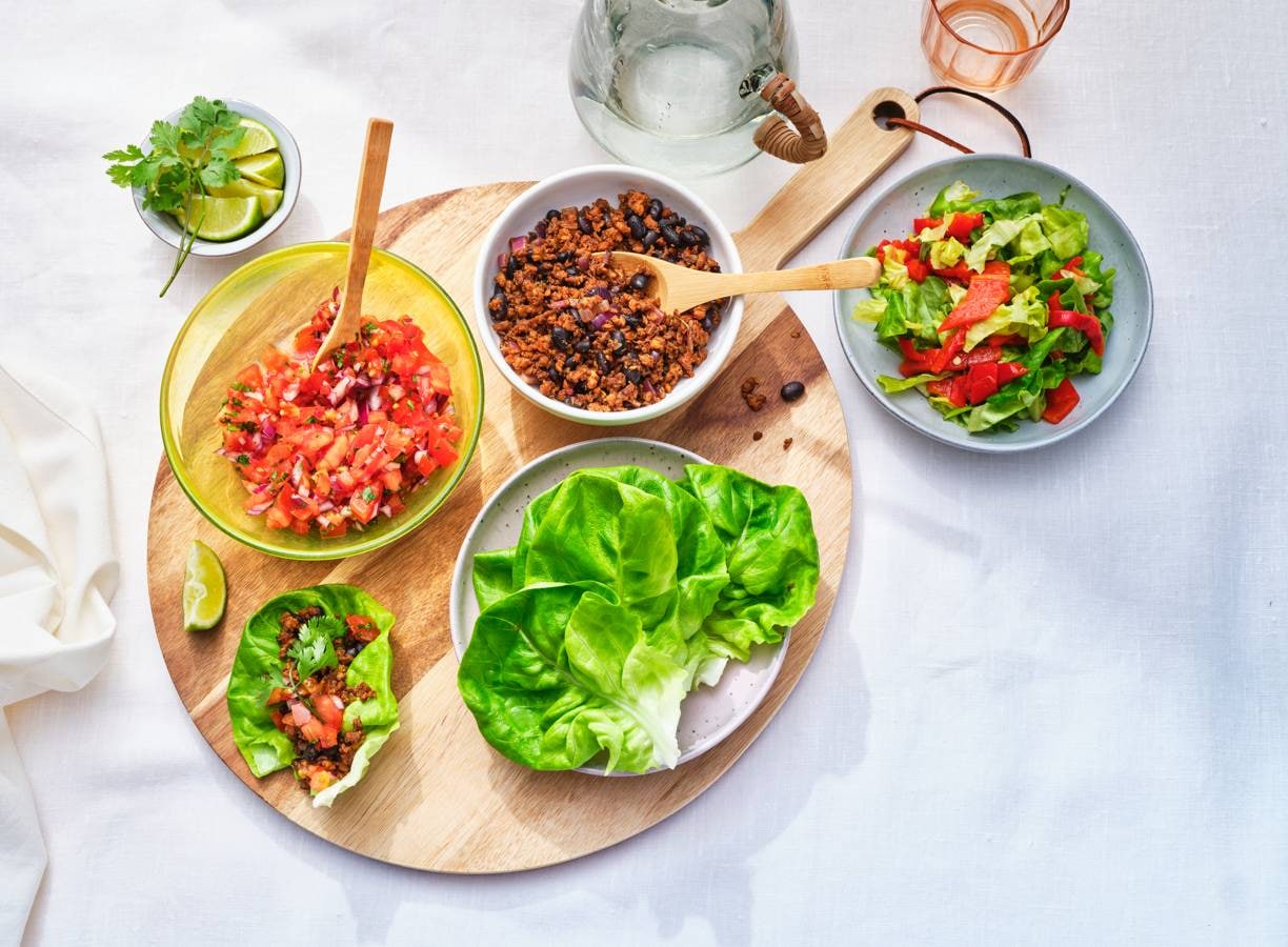 Voor deze slawraps gebruik je blaadjes kropsla als wrap, lekker licht dus!