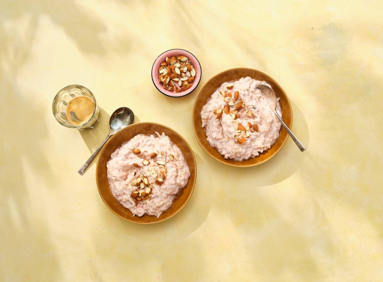 Hak de amandelen grof en strooi ze voor serveren over de overnight muesli.