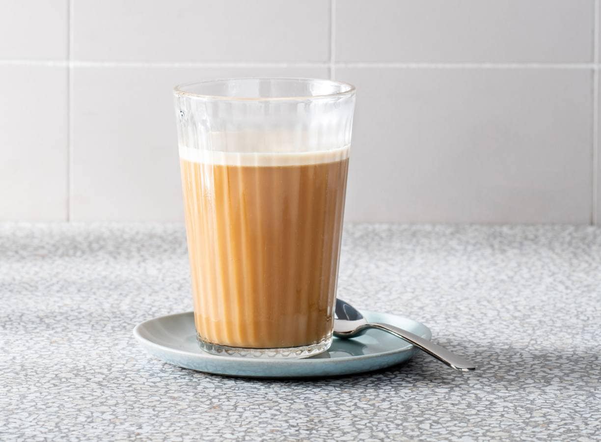 Doe de hete koffie met de ghee en de olie in een blender en mix kort, tot alles goed is gemengd. Schenk in een glas en drink warm.