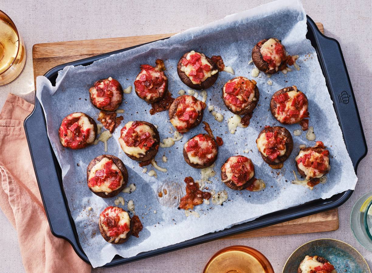 Een mini pizza om met niemand te delen? Deze champignons met romige tomatensaus en kaas kun je blijven eten.