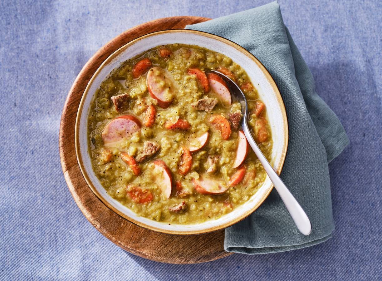 Erwtensoep uit de slowcooker: dat scheelt je een hoop werk, want de slowcooker doet het meeste werk. Had je oma dat maar eerder geweten!