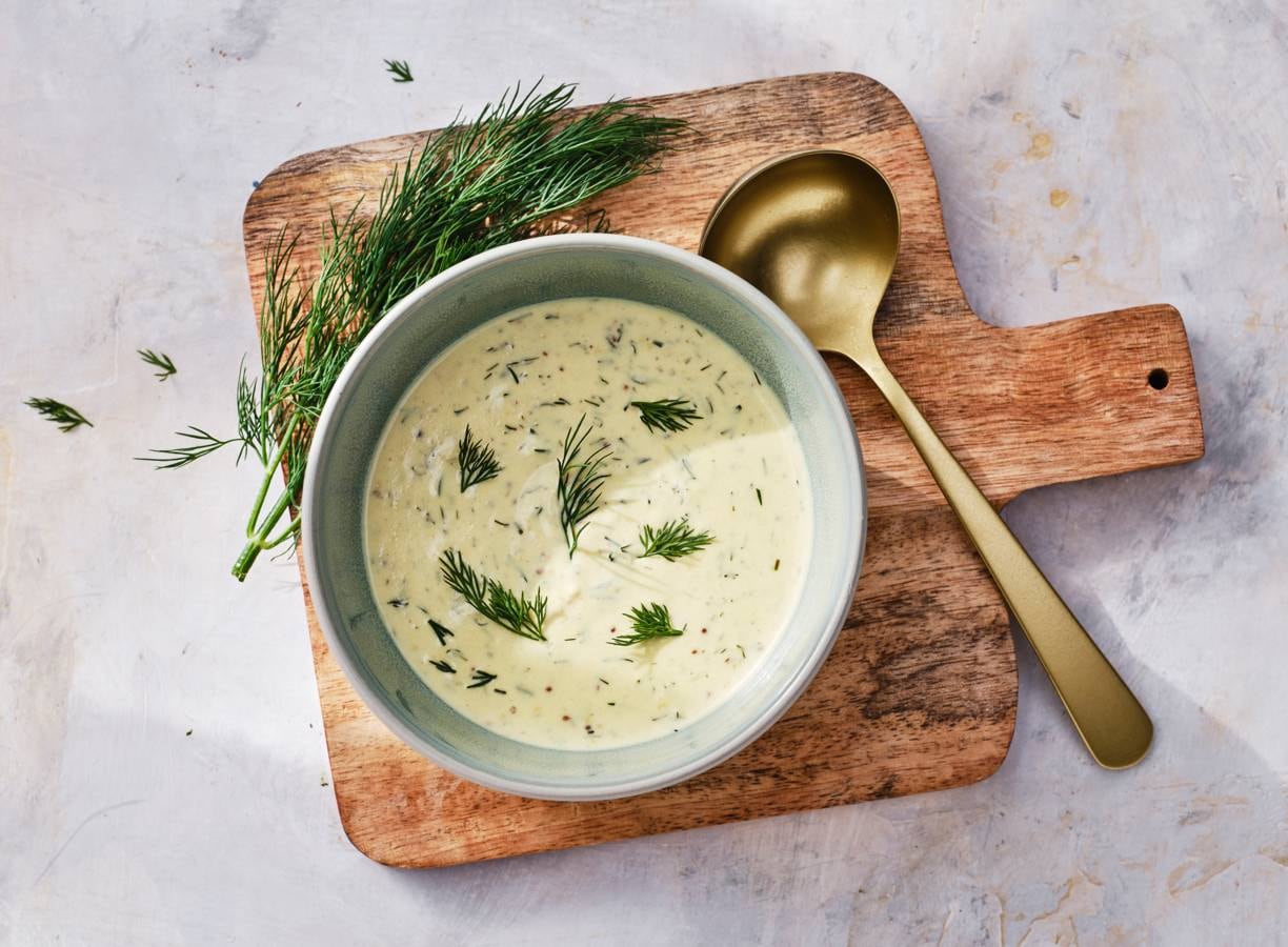 Lekkere saus bij aardappels of vis? Mosterd-dillesaus it is!