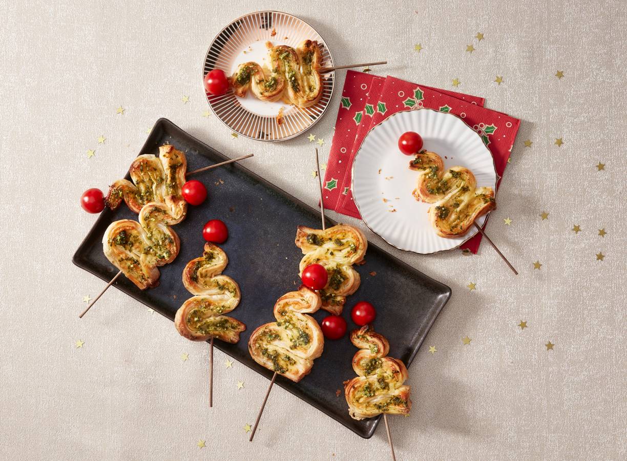 Kaas en pesto zijn altijd een goed idee. En dus ook voor Kerst. Zeker in van die vrolijke kerstboomvormpjes.