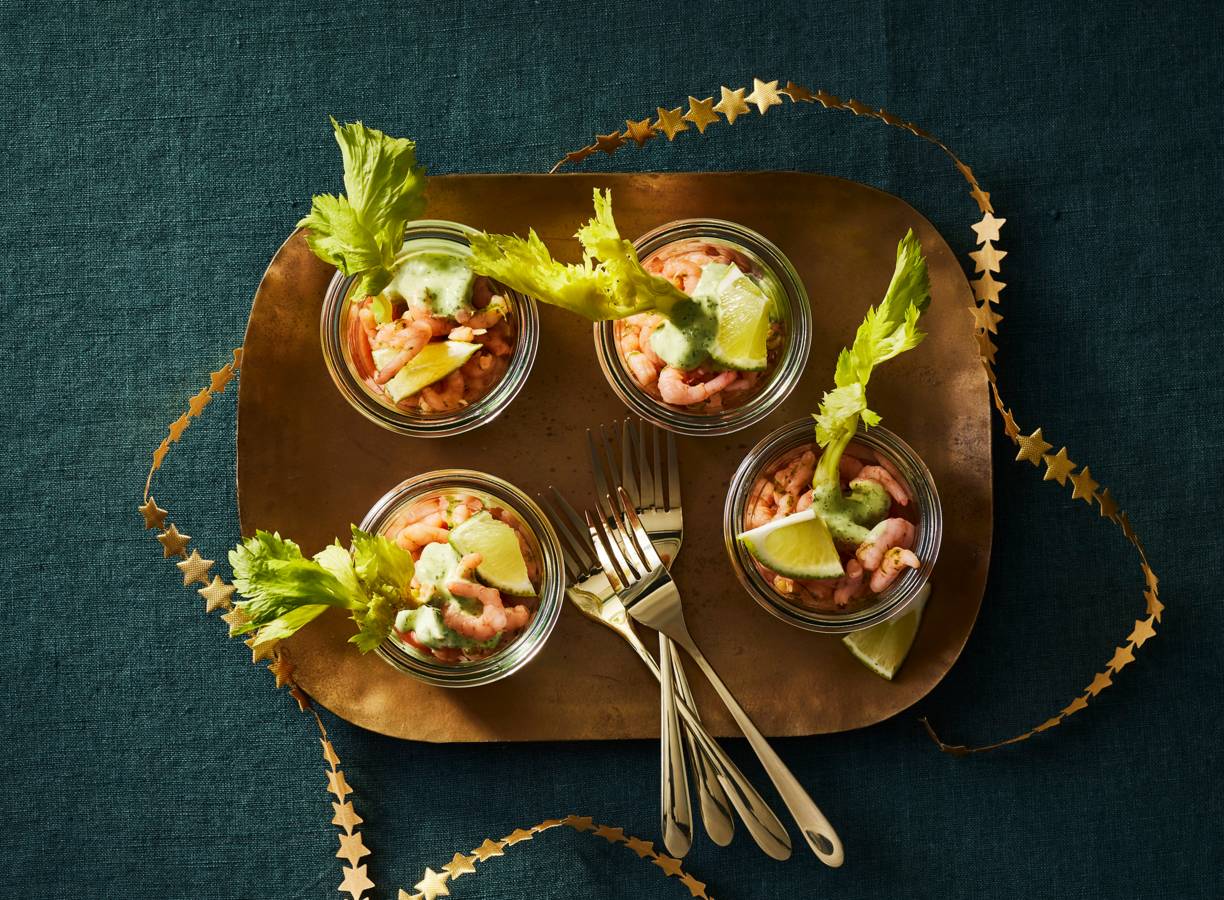 Kan je niet kiezen wat je maakt deze kerst? Ga dan voor een grande entree en maak gewoon een heleboel favorieten. Zoals deze garnalencocktail.