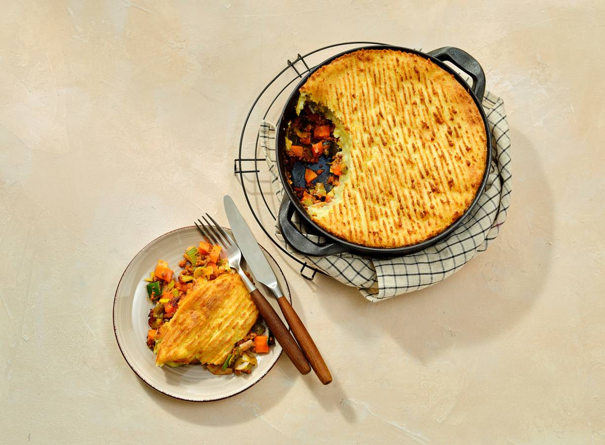 Shepherds pie maar dan vegetarisch. Met rulstukjes dus.