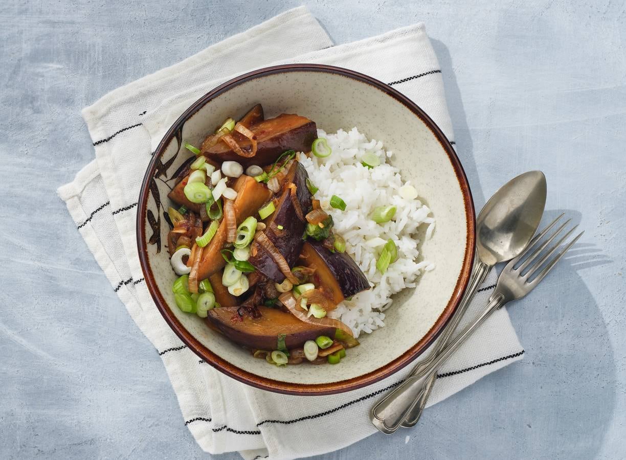 Iedereen opgelet: dit is aubergine op z'n best! Boterzacht en smaakvol dankzij het stoven in hoisin- en sojasaus.