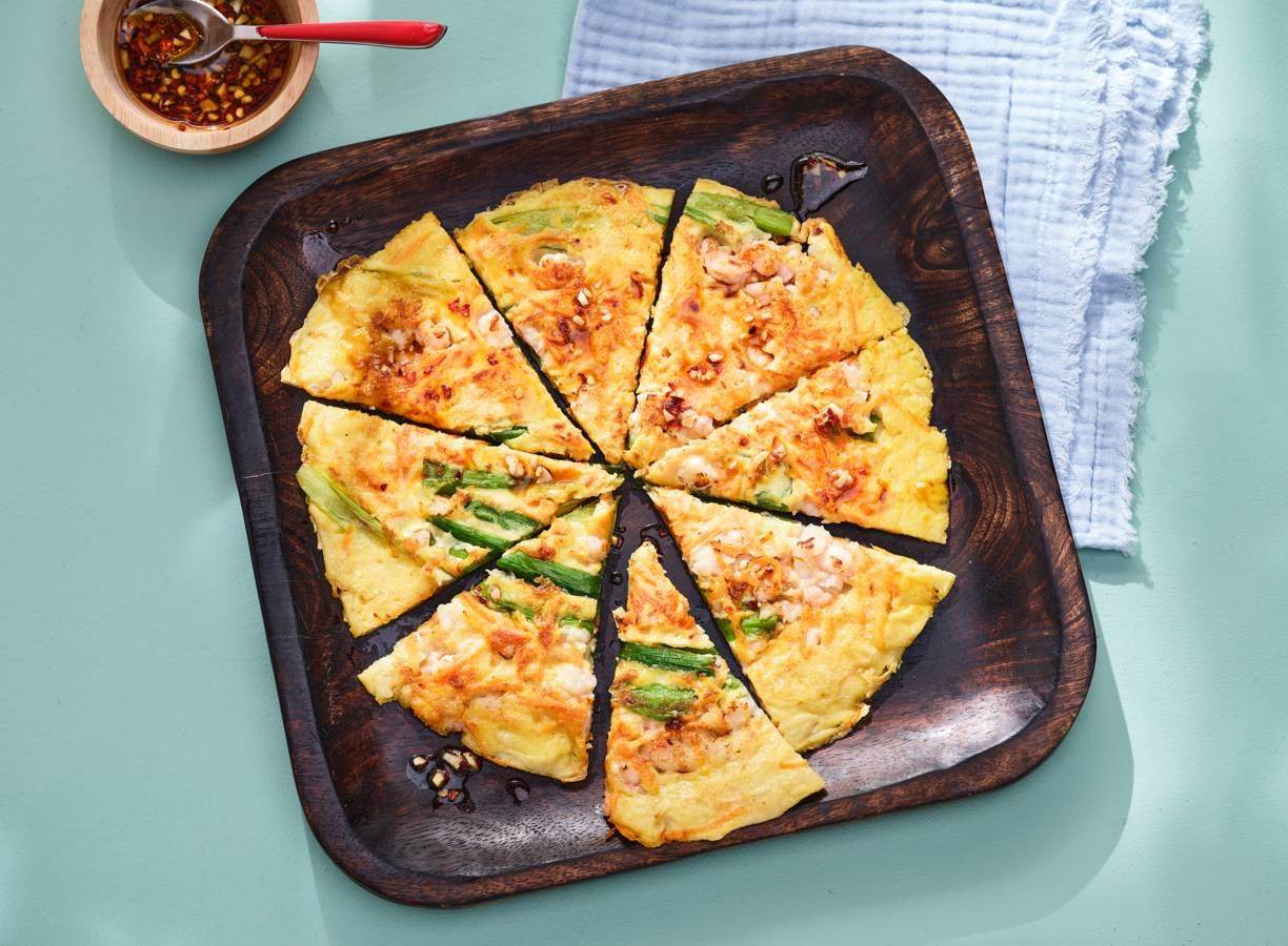 Pajeon is een van de populairste gerechten in Korea en wij snappen wel waarom: de hartige pannenkoek met bosui is een heerlijke snack of het perfecte bijgerecht. Wij maken 'm met garnalen!
