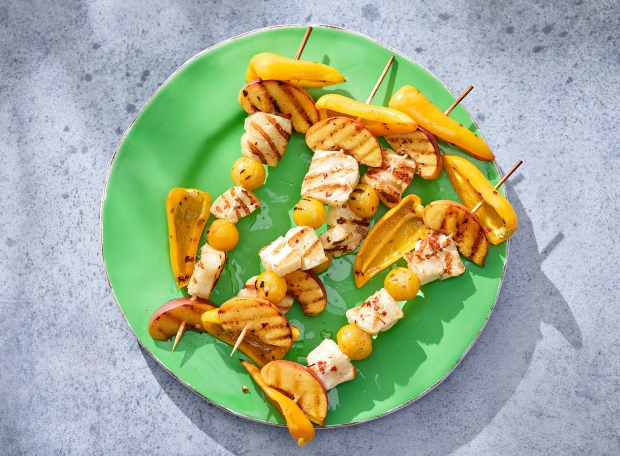 Zoute halloumi en zoete nectarine zijn een gouden combinatie en maken deze vegaspies een perfecte aanvulling op je BBQ-menu.