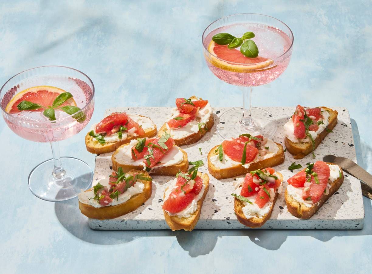 De ultieme smaaksensatie: bruschetta met ricotta, grapefruit en basilicum - de perfecte match voor jouw borrel!