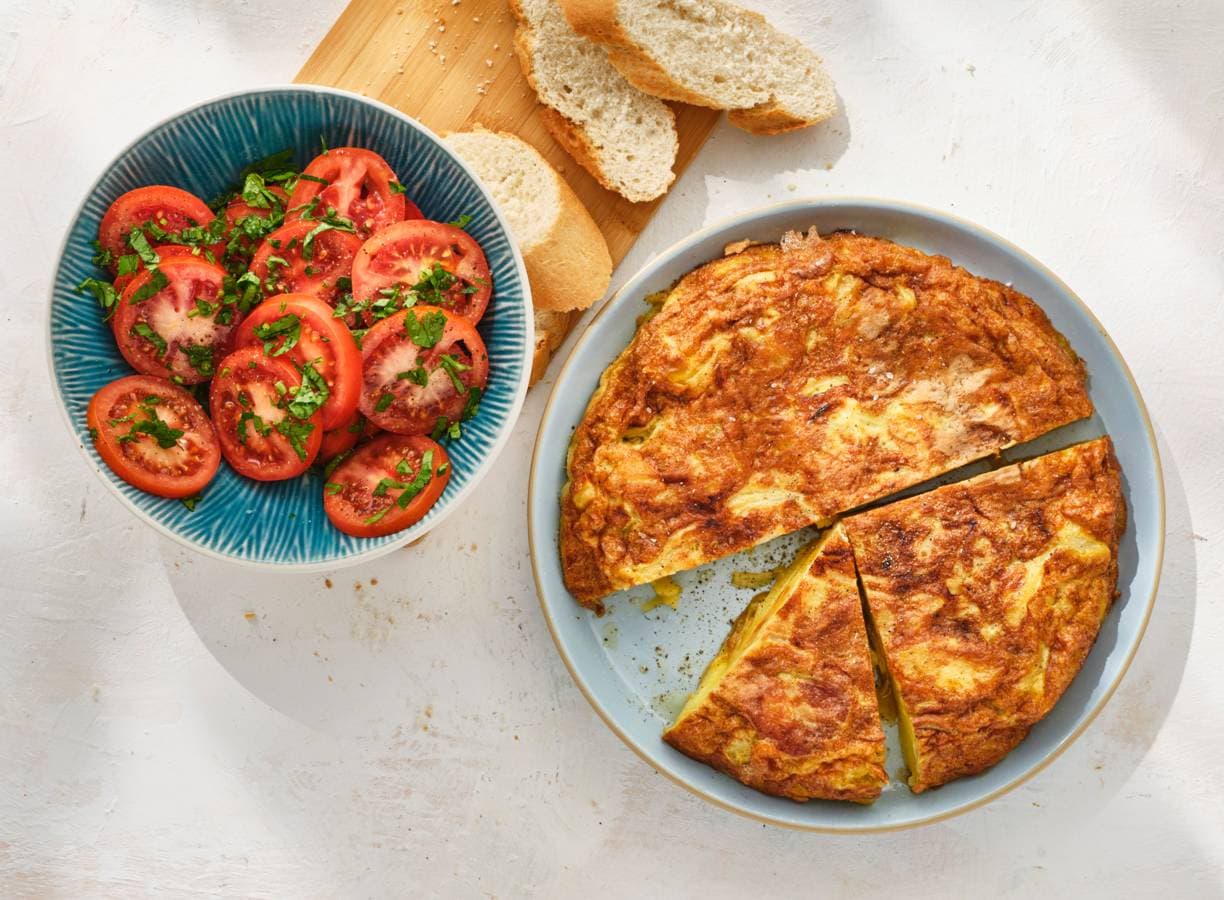 Spaanse tortilla met brood en tomatensalade