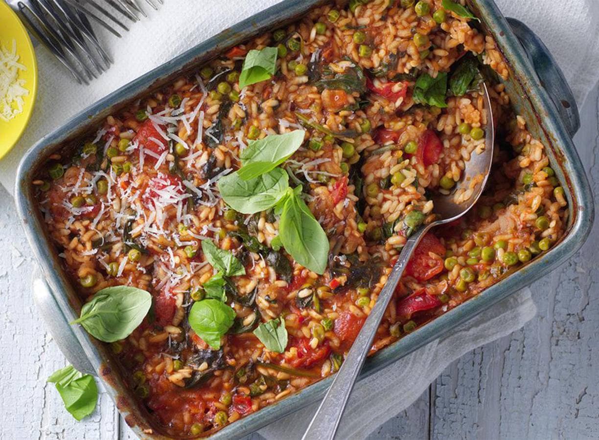 Koken met Maggi: deze risotto uit de oven maak je met verse spinazie, doperwten en Parmezaanse kaas. Makkelijk én smaakvol! Een beetje van jezelf en een beetje van Maggi.