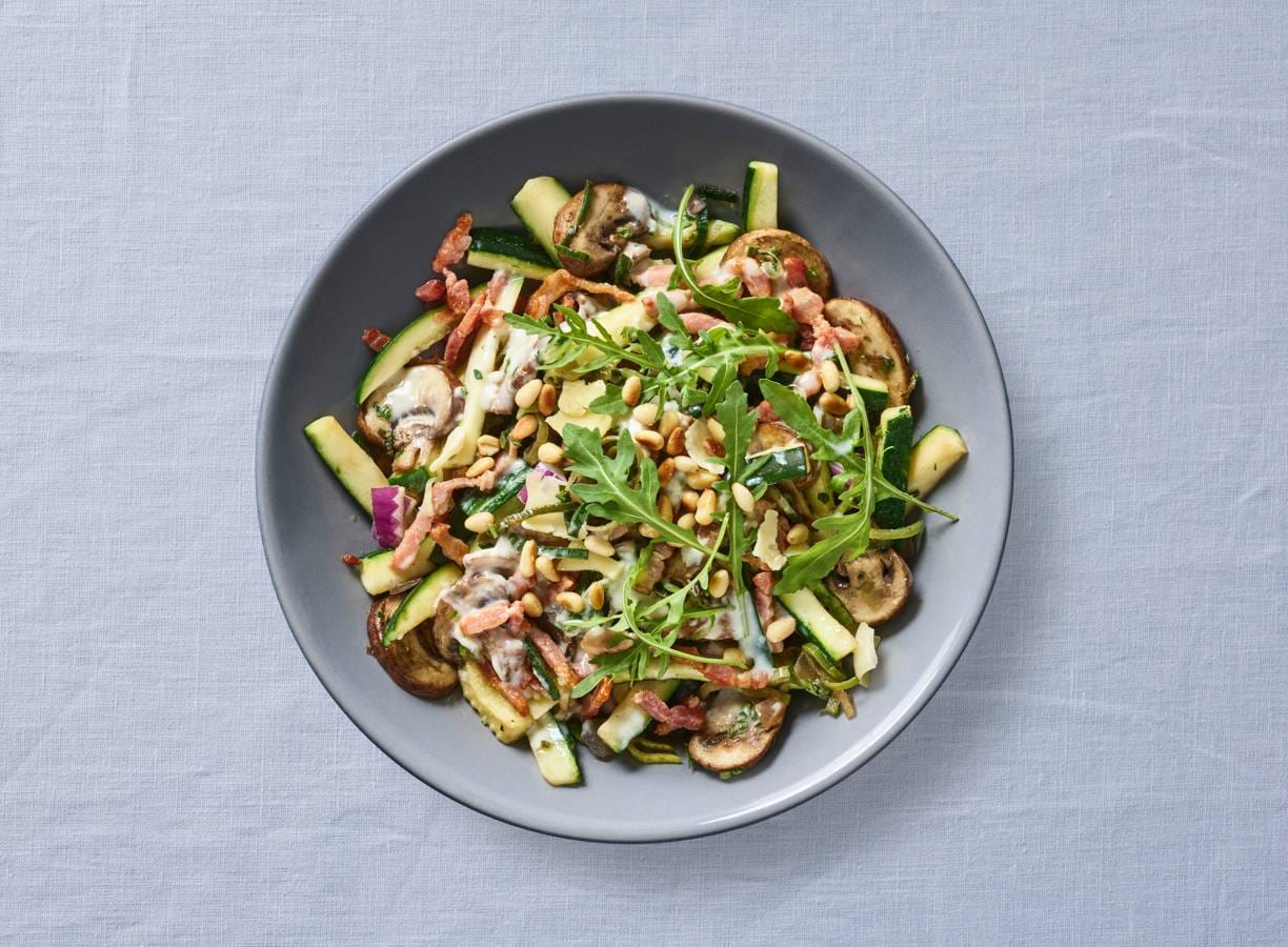 Courgetti 'carbonara'? Pasta wordt vervangen door courgettespaghetti in dit op Hollandse (door de room) geïnspireerde carbonara recept.