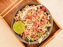 Koken met The Noodle Poodle: maak deze teriyakinoedels en zet de garneringen klaar. Zo kan iedereen zijn eigen topping kiezen. Hoe leuk is dat!