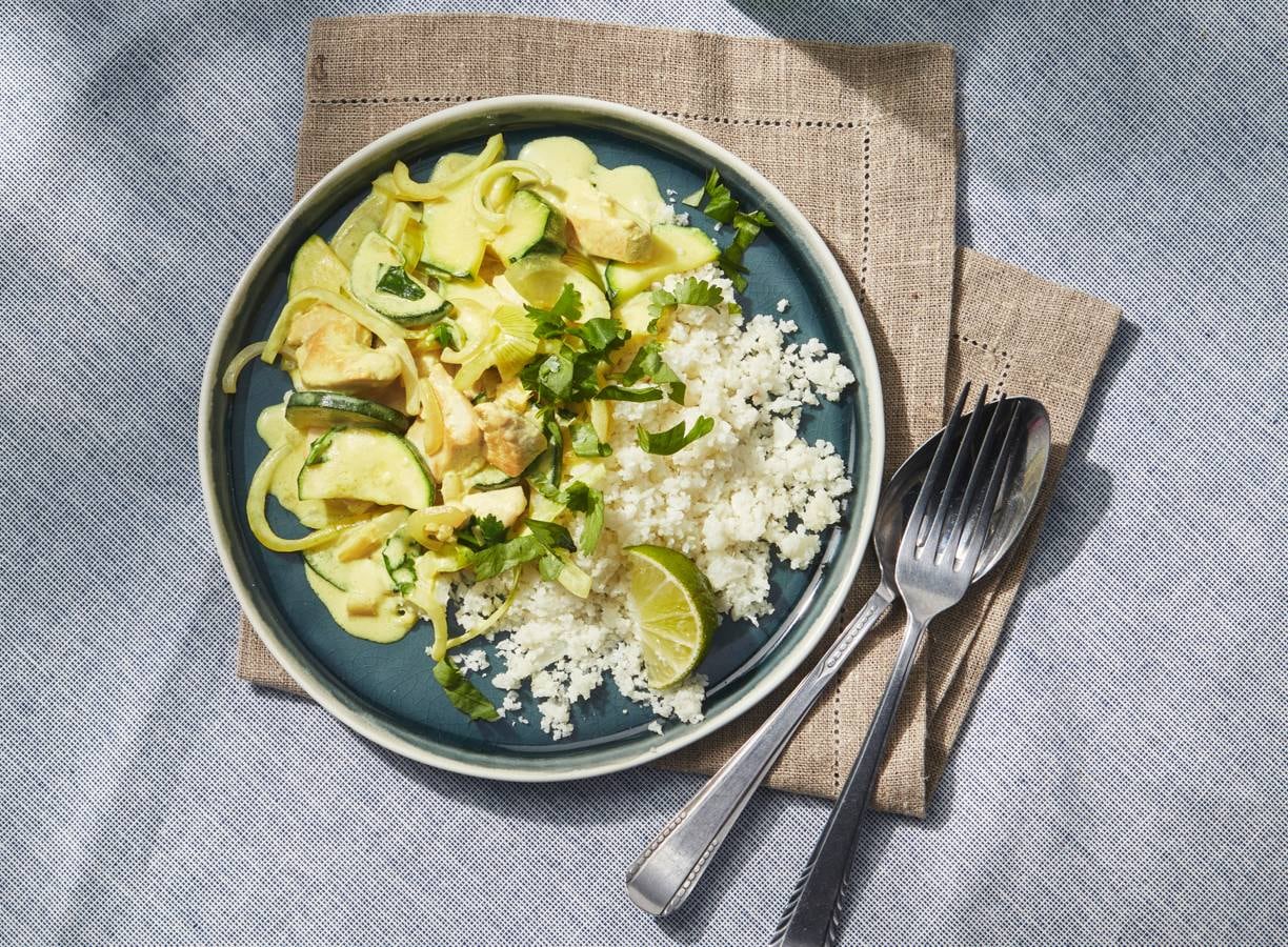 Kip-kokoscurry met courgette en bloemkoolrijst