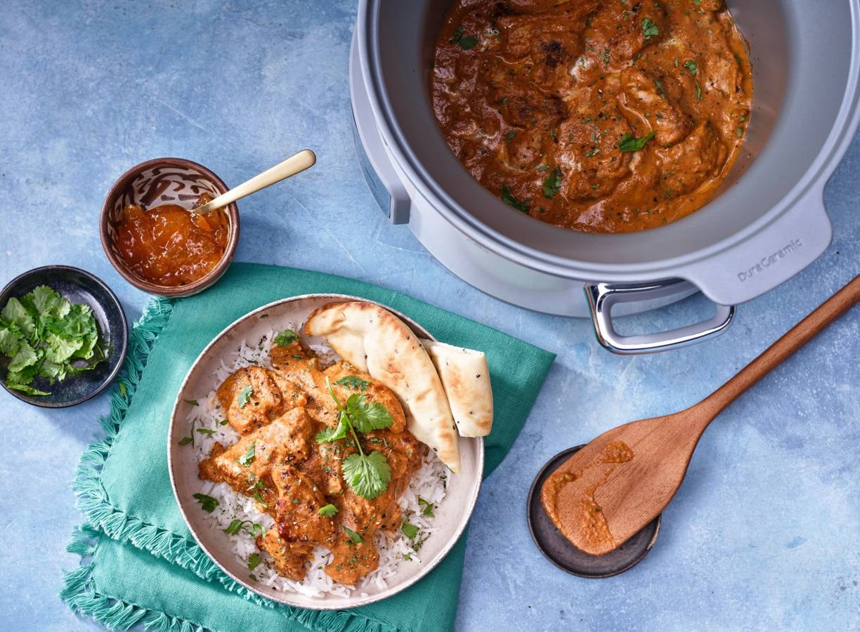 Masala, gember en fenegriek... Je proeft het allemaal in deze fluweelzachte butter chicken uit de slowcooker. Lekker met naan of rijst.