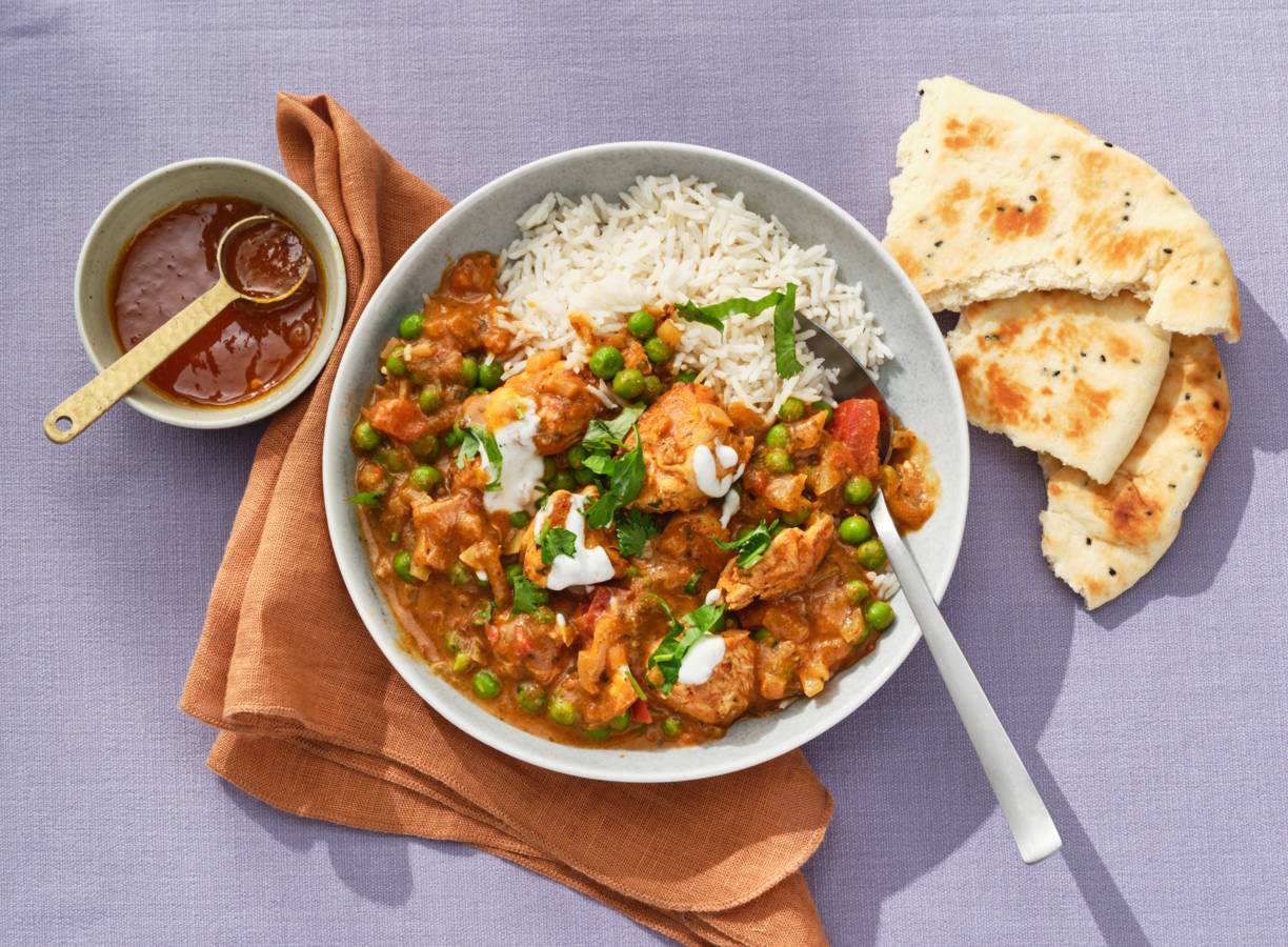 combinatietip:Lekker met koriander, rijst en mangochutney.