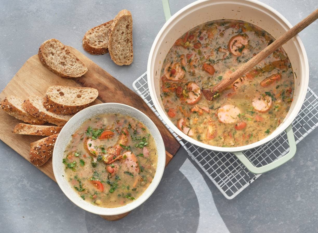 Gevuld met spekreepjes, bruine bonen en Gelderse rookworst. Deze bruine bonensoep is een hartige kom vol comfort.