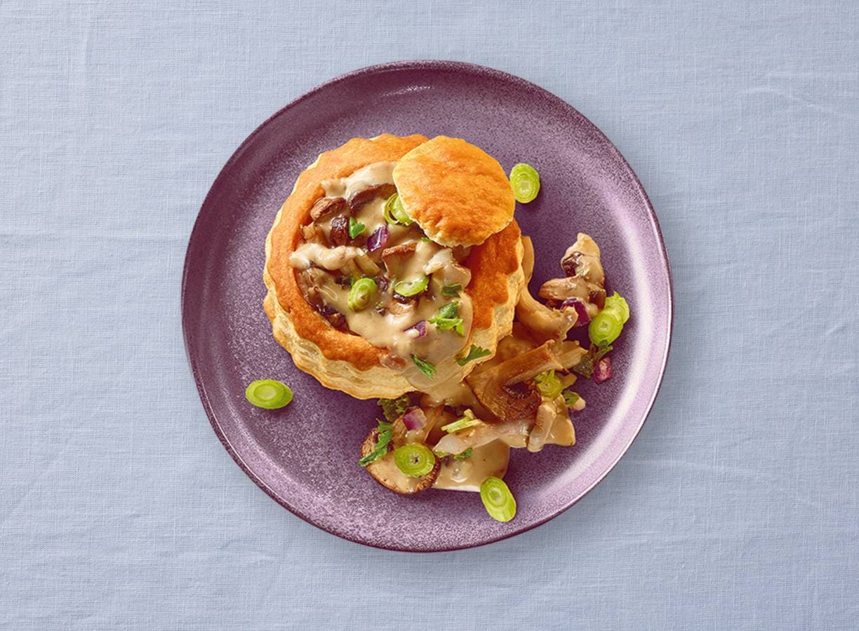 Altijd feest met ragoutpasteitjes! Met dit handige verspakket maak je een bospaddenstoelenragout met meegeleverde knapperige pasteibakjes.