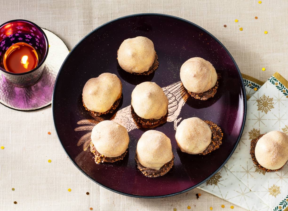 In één hap proef je slagroom, chocolade en dan opeens… het knapperige van pretzel. Deze gouden soesjes zijn per-fect voor kerst.