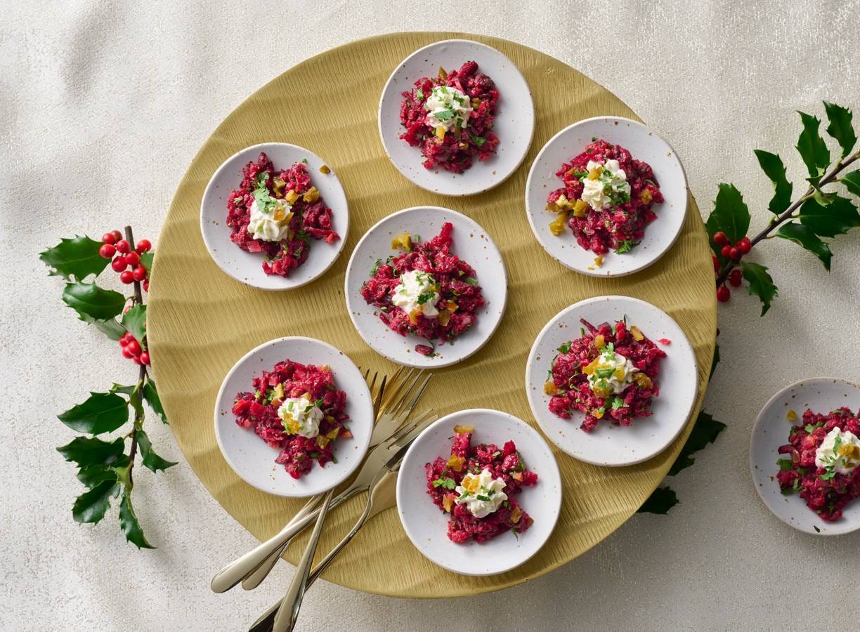 Deze tartaar van bietstuk met jalapeñocrème wil je proberen. De smaak van de biet is intens door het drogen en heerlijk in combinatie met de pittige roomkaas.