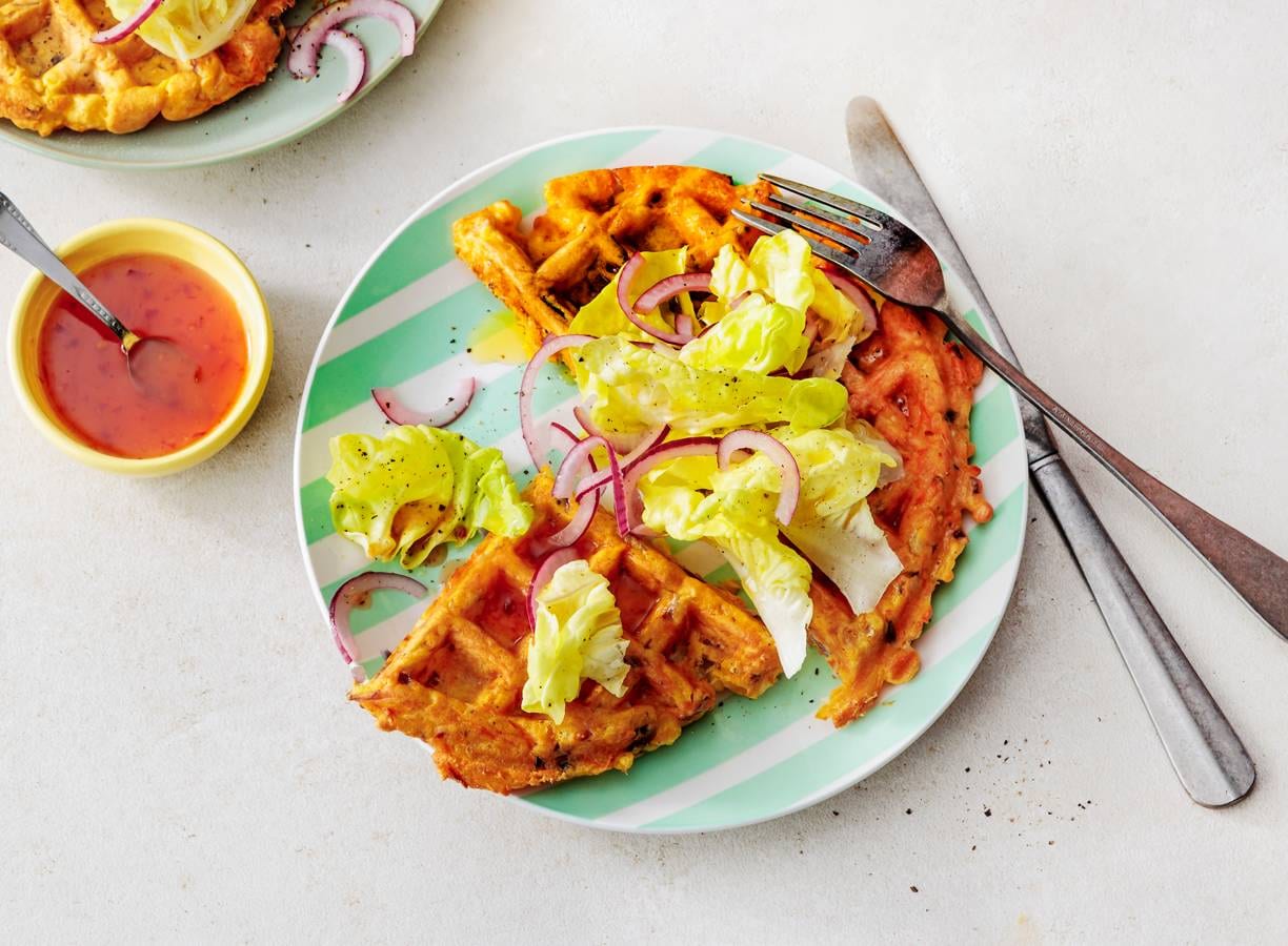Met restjes groente kun je eindeloos variëren, zo eet je steeds weer wat nieuws. Zoals deze fijne hartige groentewafels. In deze variant zit zelfs 200 g groente!