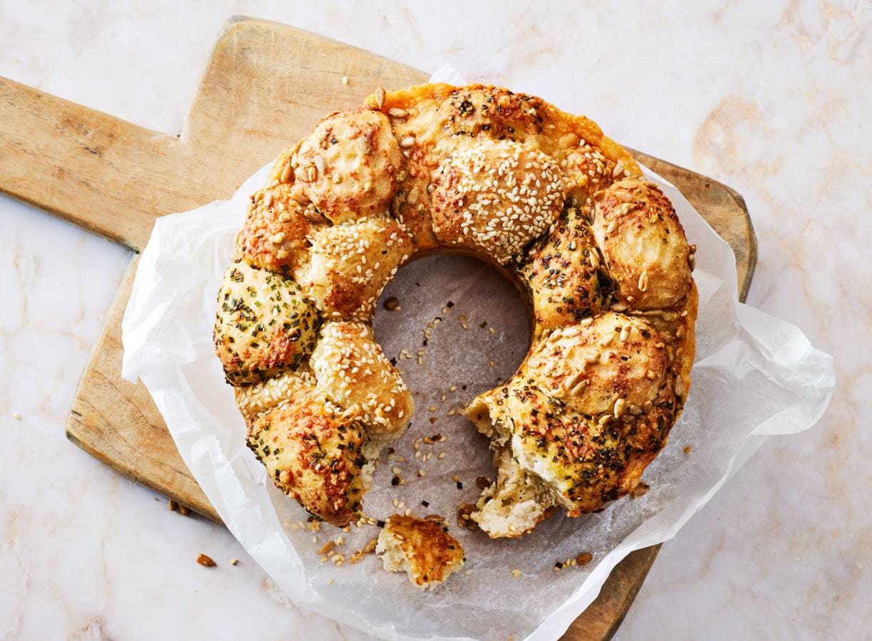 Een kruidenboter-moneybread met een cheesy touch. Een verrassende brunchtraktatie die iedereen lekker gaat vinden.