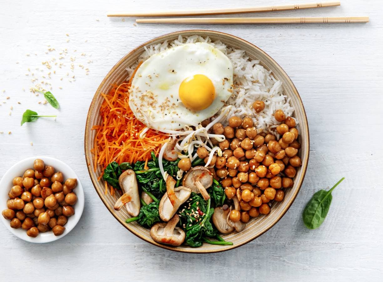 Koken met Bonduelle: zin in een makkelijke, gezonde en heerlijke maaltijd? Tover dan je stokjes maar tevoorschijn en waan je in Azië met deze Koreaanse bibimbap met geroosterde kikkererwten. Meer bite, meer smaak!
