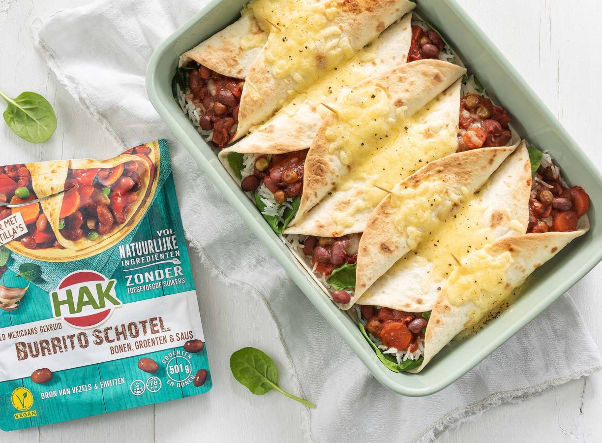 Koken met HAK: Maak gemakkelijk rijkgevulde wraps met HAK burritoschotel. Een gezonde basis voor een lekker gerecht met bonen, groenten & saus.